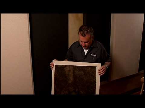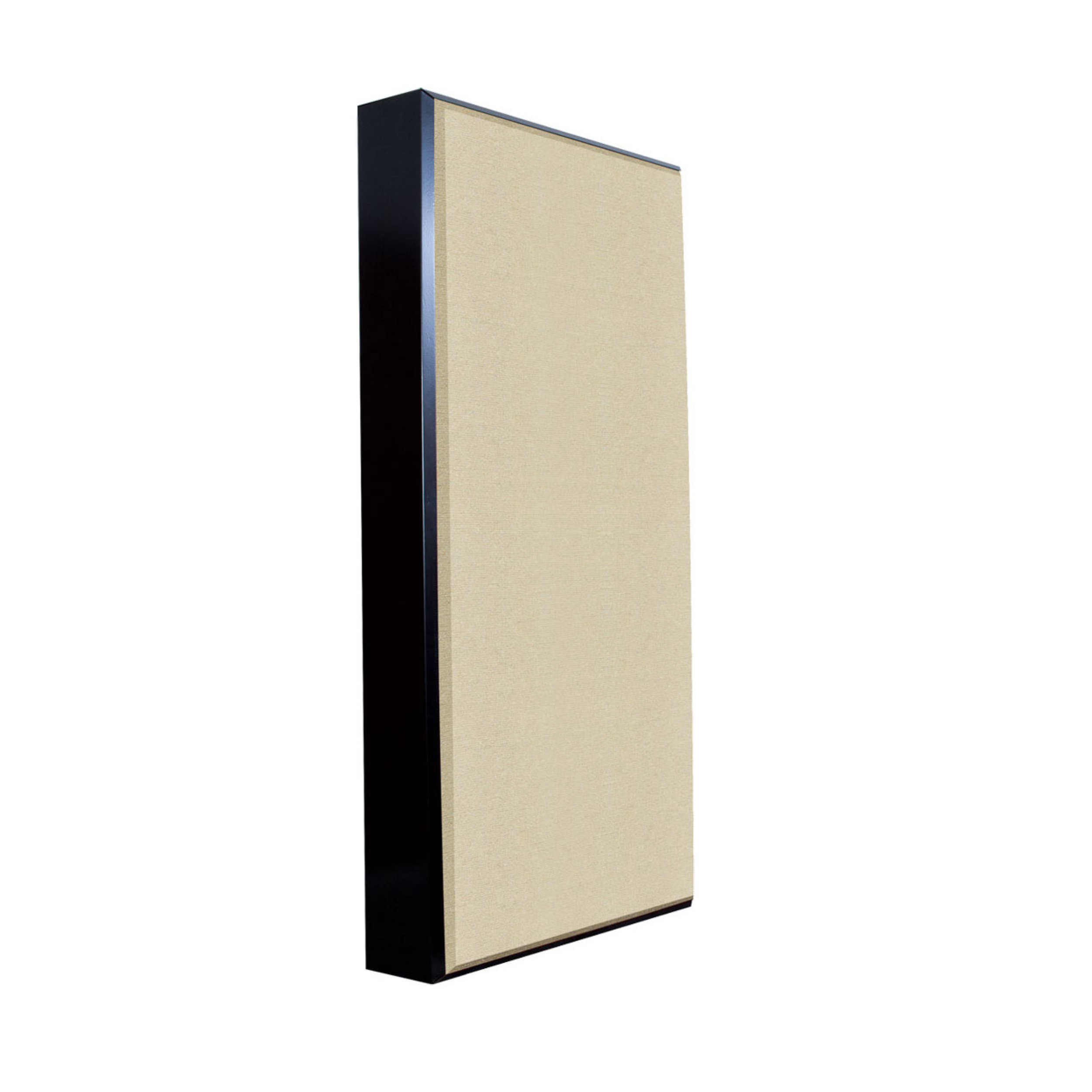 - 6"x2'x4' fabric-covered fiberglass bass trap enclosed within a black steel frame